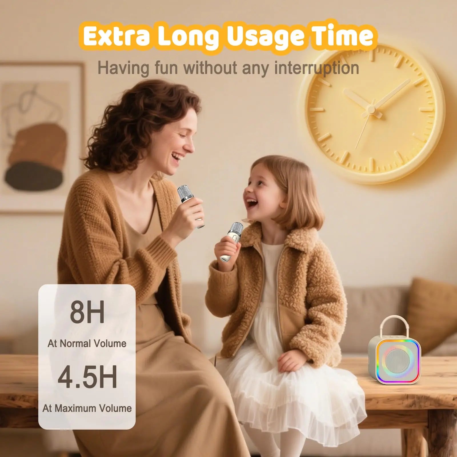 A bateria recarregável integrada garante longas horas de diversão contínua, permitindo que as crianças aproveitem sessões prolongadas de canto sem interrupções. Seja para uso doméstico, festas, encontros familiares ou brincadeiras ao ar livre, este karaokê portátil infantil entrega desempenho confiável, facilidade de uso e muita diversão.