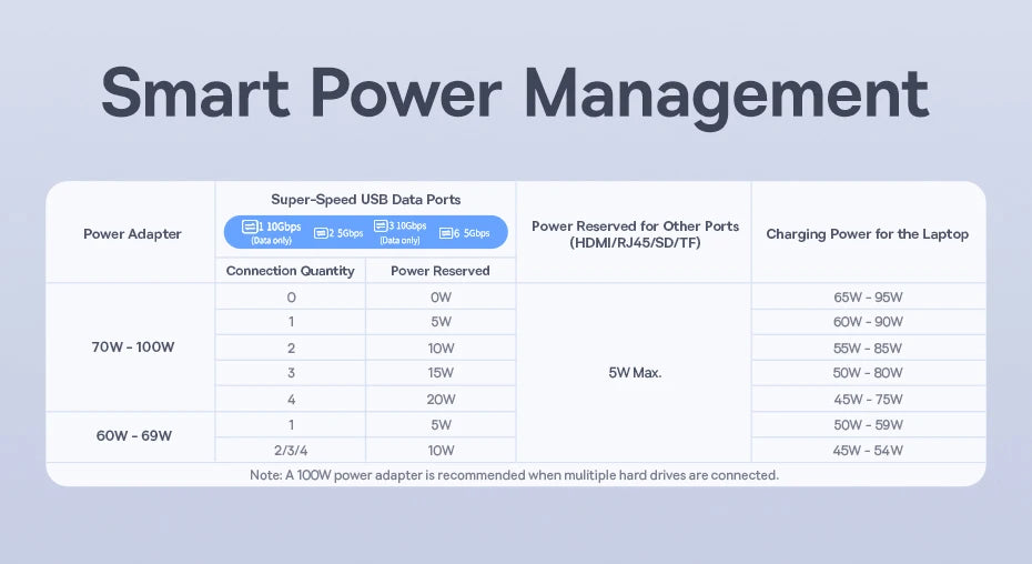 O Power Delivery inteligente de 100W permite alimentar o notebook enquanto todos os dispositivos permanecem conectados, sem perda de desempenho.