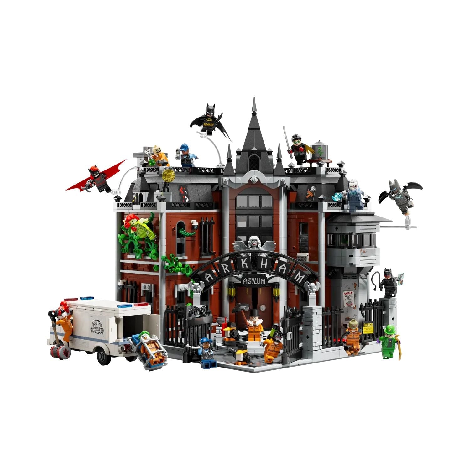 O LEGO Batman Arkham Asylum 76300 Conjunto de Construção Colecionável é uma obra-prima da linha LEGO DC que coloca fãs diretamente no coração sombrio de Gotham City. Inspirado em um dos locais mais icônicos do universo Batman, o manicômio Arkham Asylum, este conjunto de construção é composto por 2.953 peças e entrega uma experiência de montagem imersiva e gratificante. Ideal para adultos e colecionadores, o kit inclui 16 minifiguras exclusivas, entre elas Batman, Coringa, Arlequina, Charada, Pinguim e muitos outros vilões clássicos. O projeto modular garante acesso completo ao interior, revelando celas móveis, ambientes temáticos e até mesmo um furgão de transporte de prisioneiros. Cada detalhe arquitetônico foi cuidadosamente recriado para transmitir o clima sombrio do Arkham e a atmosfera inconfundível do universo DC Comics.