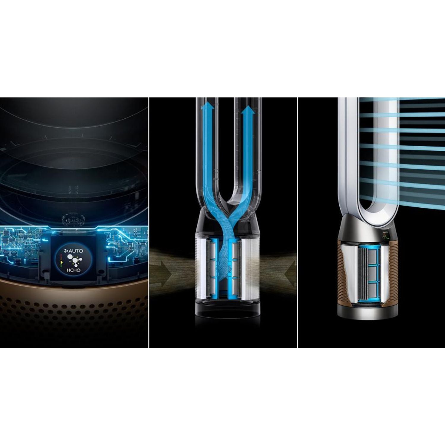 Sensores integrados monitoram continuamente a qualidade do ar, detectando partículas, gases e formaldeído em tempo real. As informações são exibidas no visor LCD e podem ser acompanhadas remotamente por meio do aplicativo MyDyson, que permite criar rotinas, receber relatórios personalizados e acompanhar a vida útil do filtro.