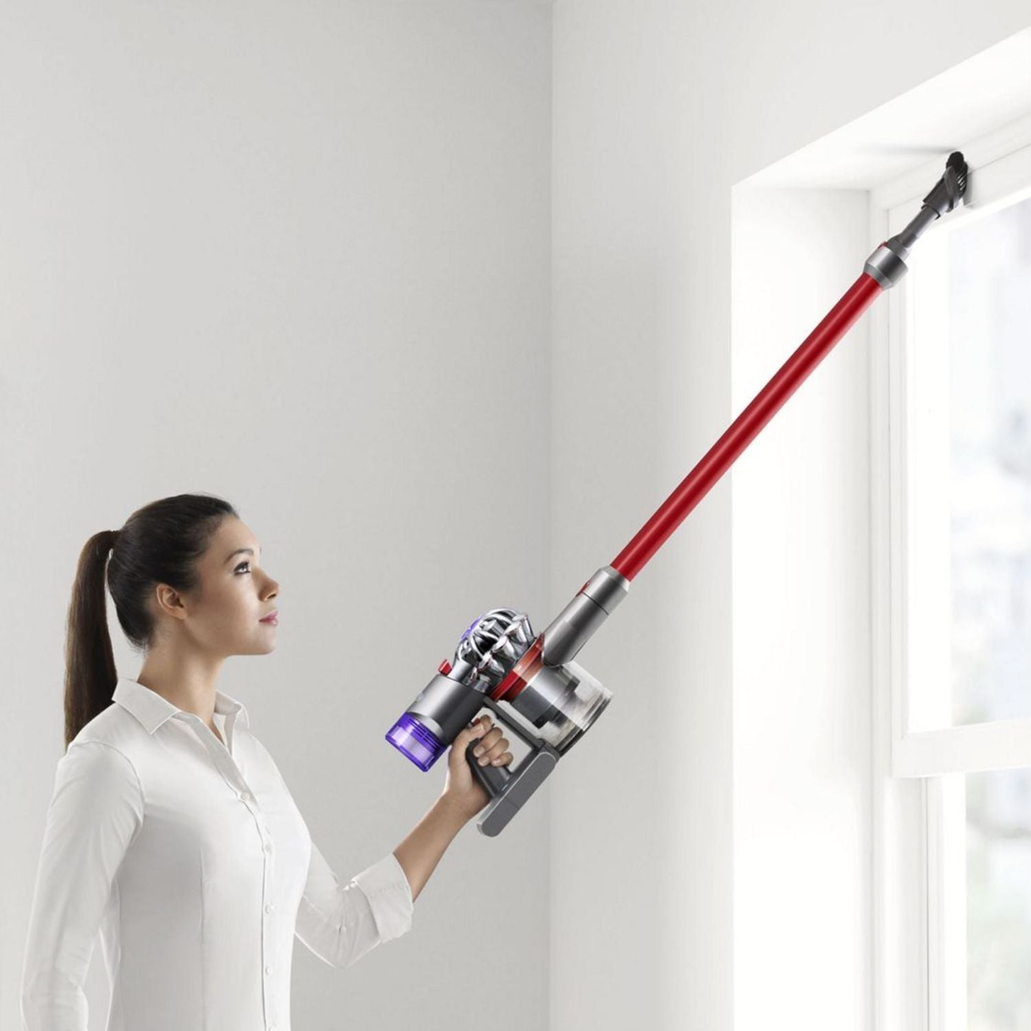 Com autonomia de até 40 minutos, o Dyson V8 Slim™ Fluffy é ideal para limpezas completas sem interrupções. Sua estrutura leve facilita o uso prolongado e permite a limpeza de pisos, superfícies elevadas, frestas, estofados e colchões com os acessórios inclusos.