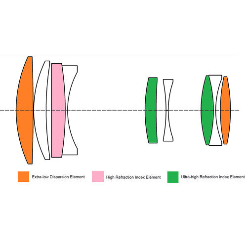 - Elementos Ópticos Avançados: Dois elementos de baixa dispersão e dois de alto índice reduzem aberrações cromáticas, garantindo imagens nítidas.