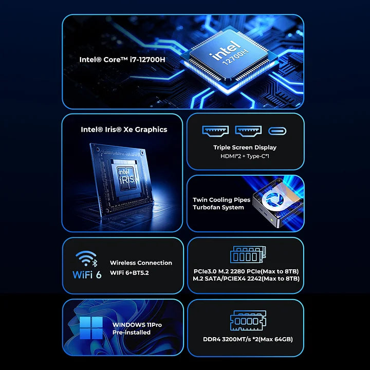 Além disso, a eficiência da 12ª geração Intel garante excelente equilíbrio entre desempenho e consumo energético, tornando o NucBox M3 uma solução confiável, moderna e preparada para longas jornadas de uso.