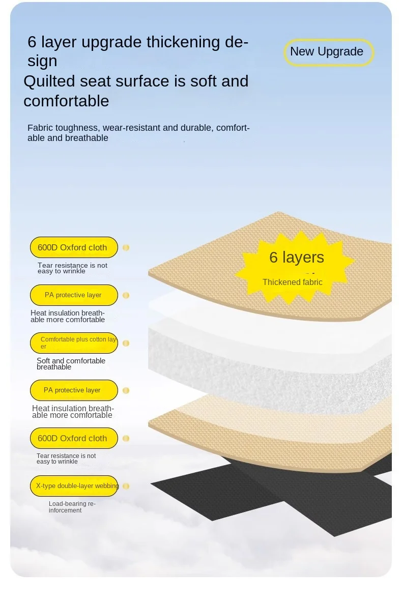 | Material do assento | Tecido Oxford reforçado |