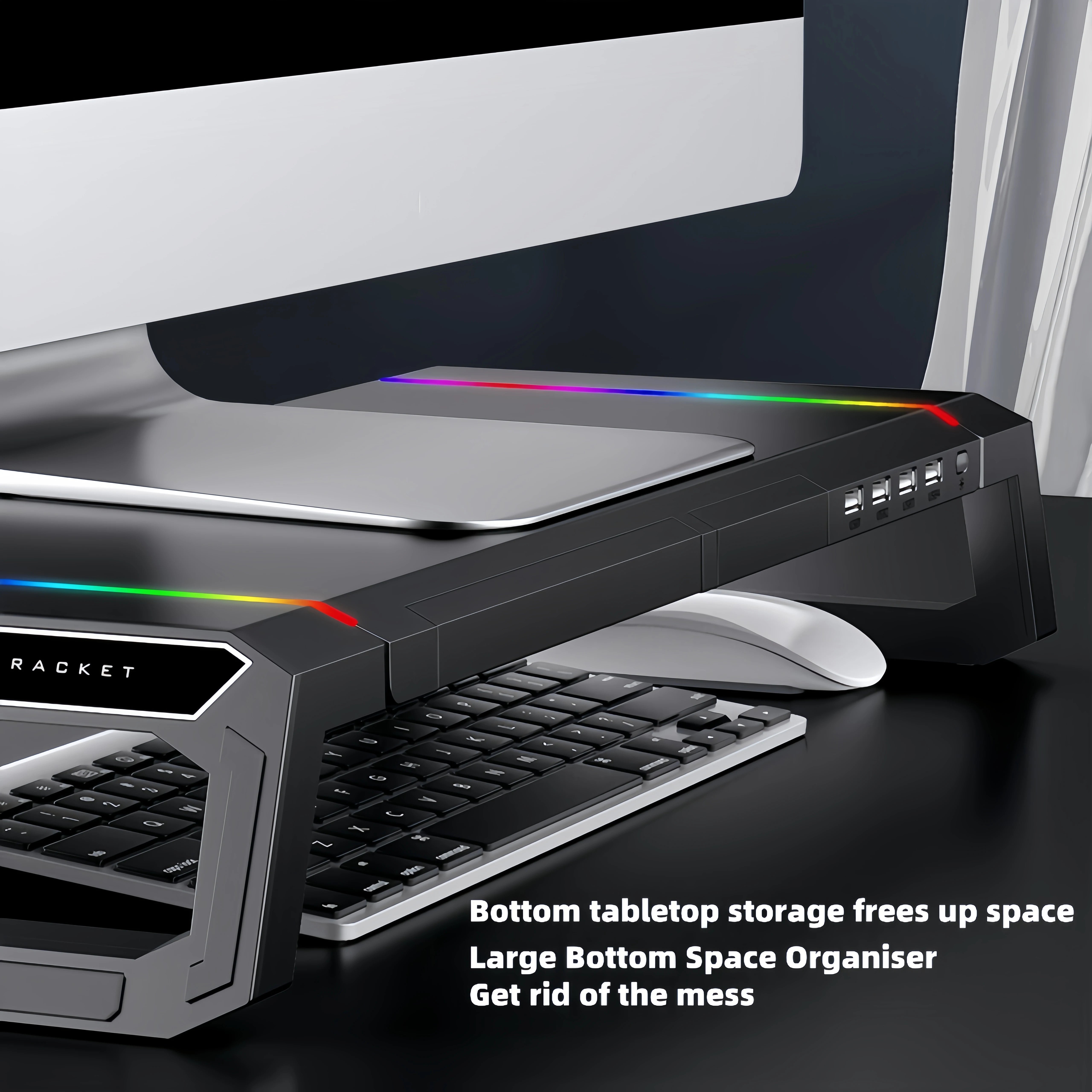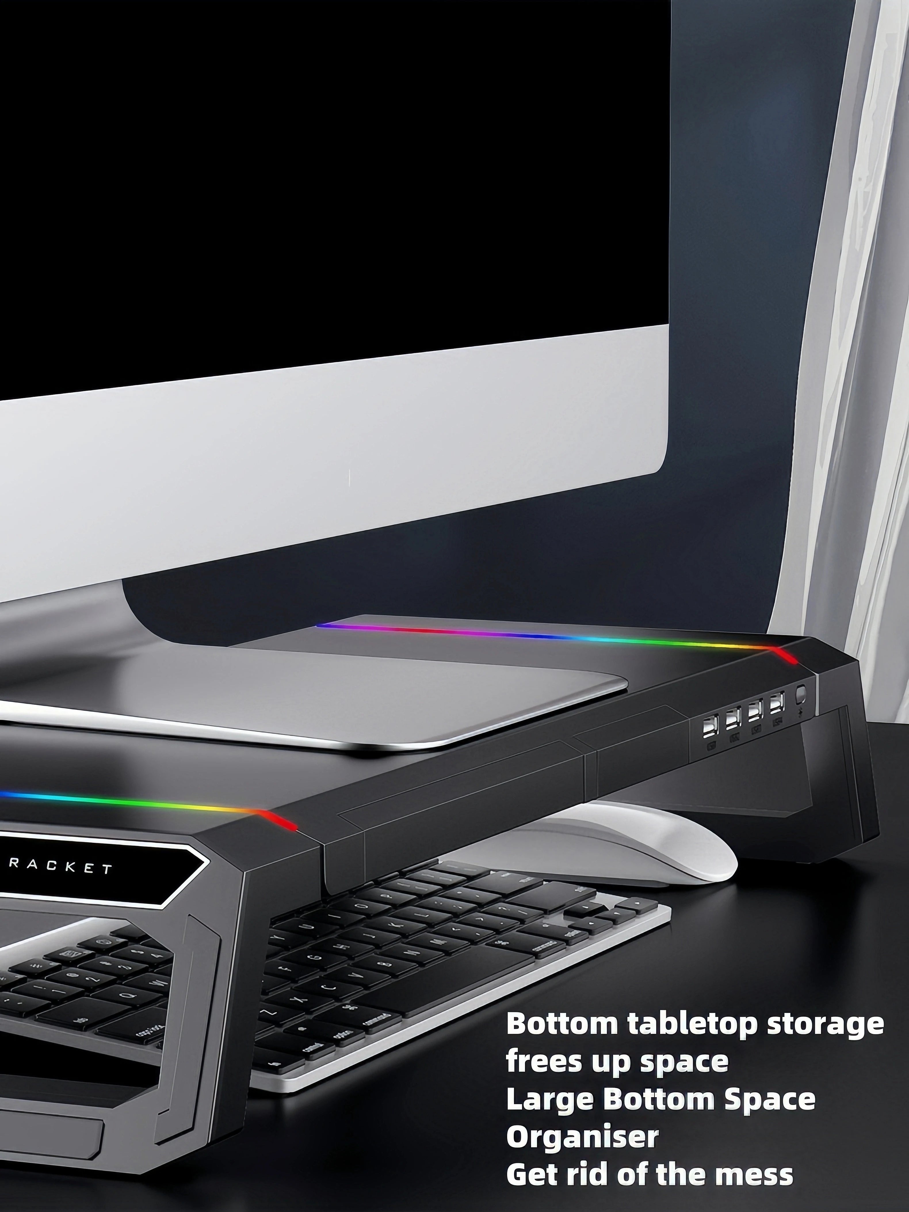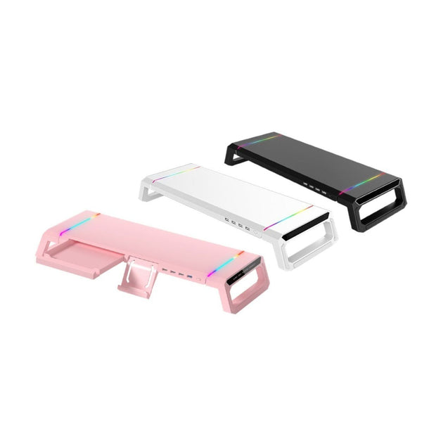 Suporte de Monitor com Iluminação RGB, Hub USB 3.0 e Organização de Mesa