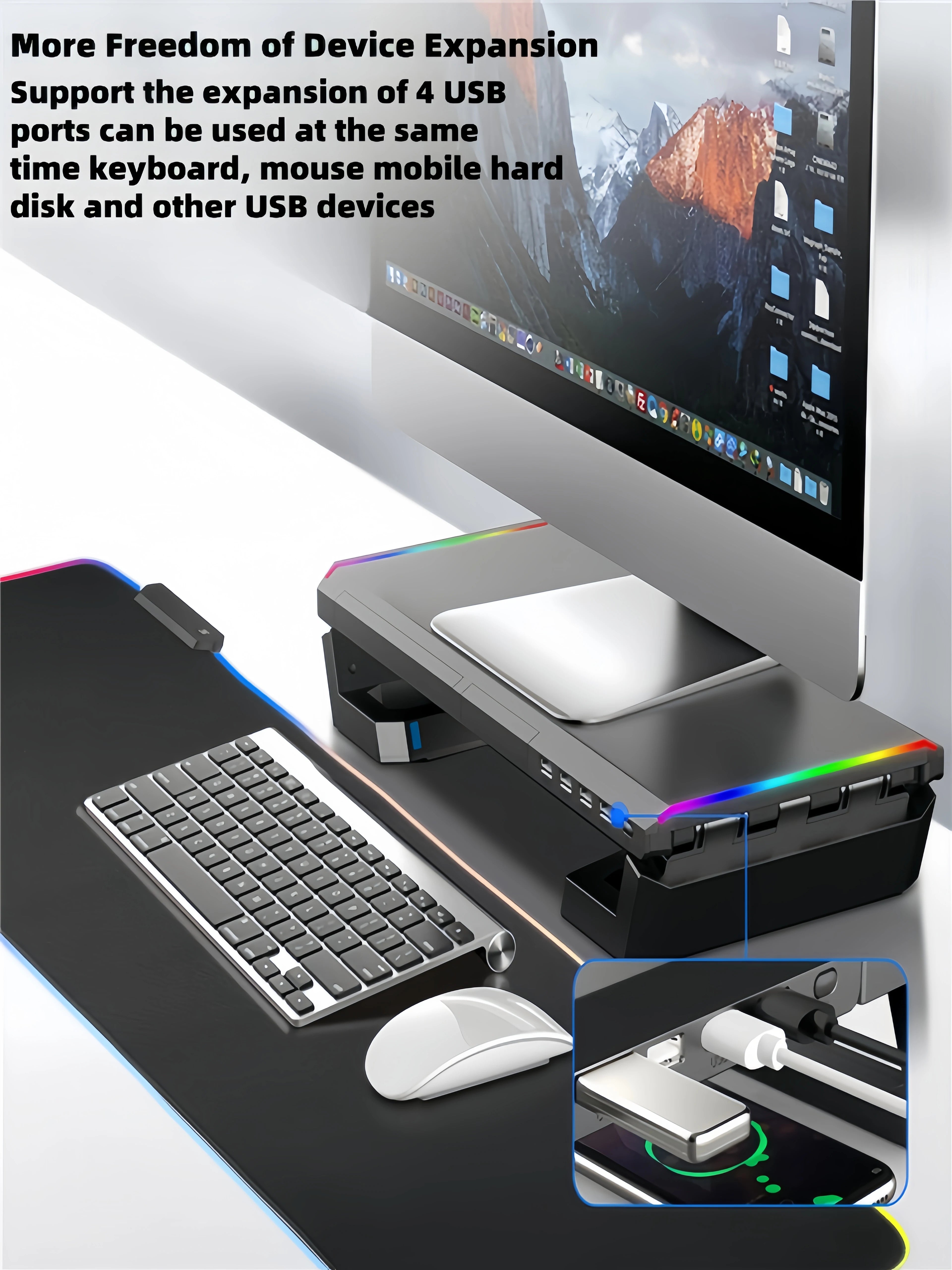 - 1 Suporte de monitor multifuncional com RGB e USB