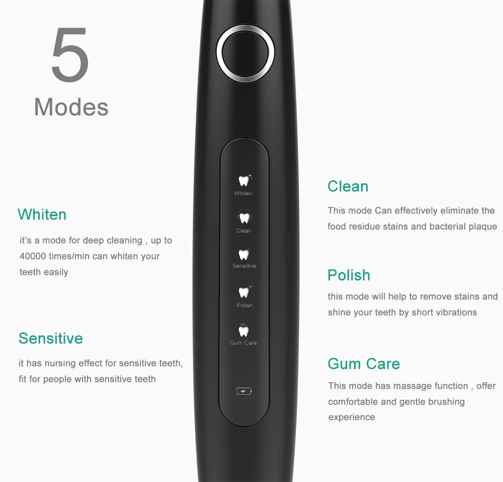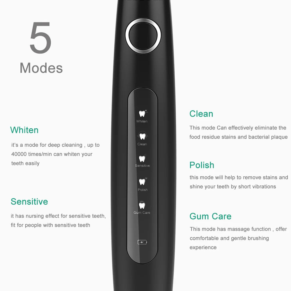 Escova de Dentes Sônica Recarregável USB Clareamento IPX7