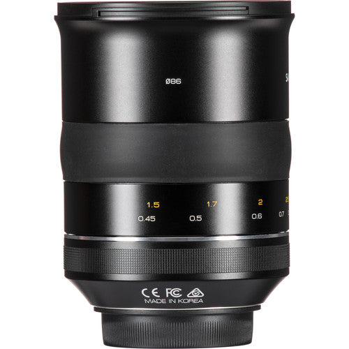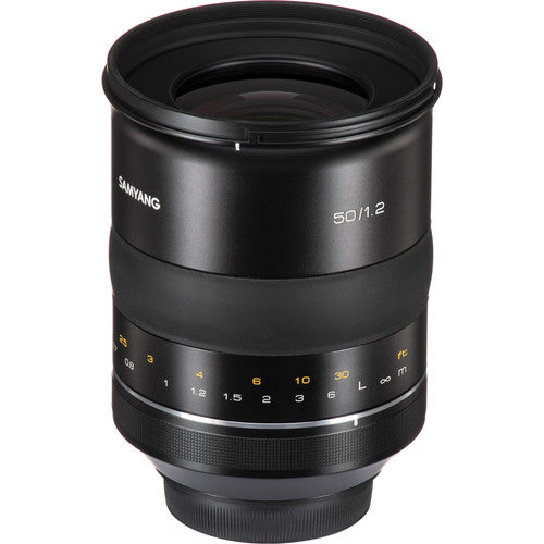 O Samyang 50mm f/1.2 oferece uma abertura máxima rápida de f/1.2, permitindo excelente desempenho em condições de baixa luminosidade e controle sobre a profundidade de campo. Sua construção óptica avançada, com elementos asféricos e de alto índice de refração, minimiza aberrações esféricas e distorções, resultando em imagens nítidas e com alta fidelidade de cores. Além disso, o design em alumínio proporciona durabilidade e leveza ao equipamento.