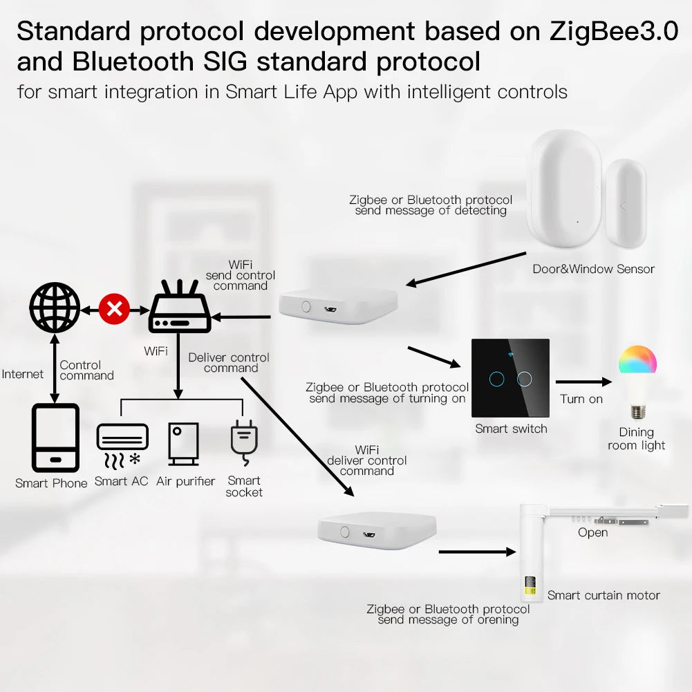 Gateway Inteligente Tuya Multi-Modo Bluetooth Zigbee Malha Hub