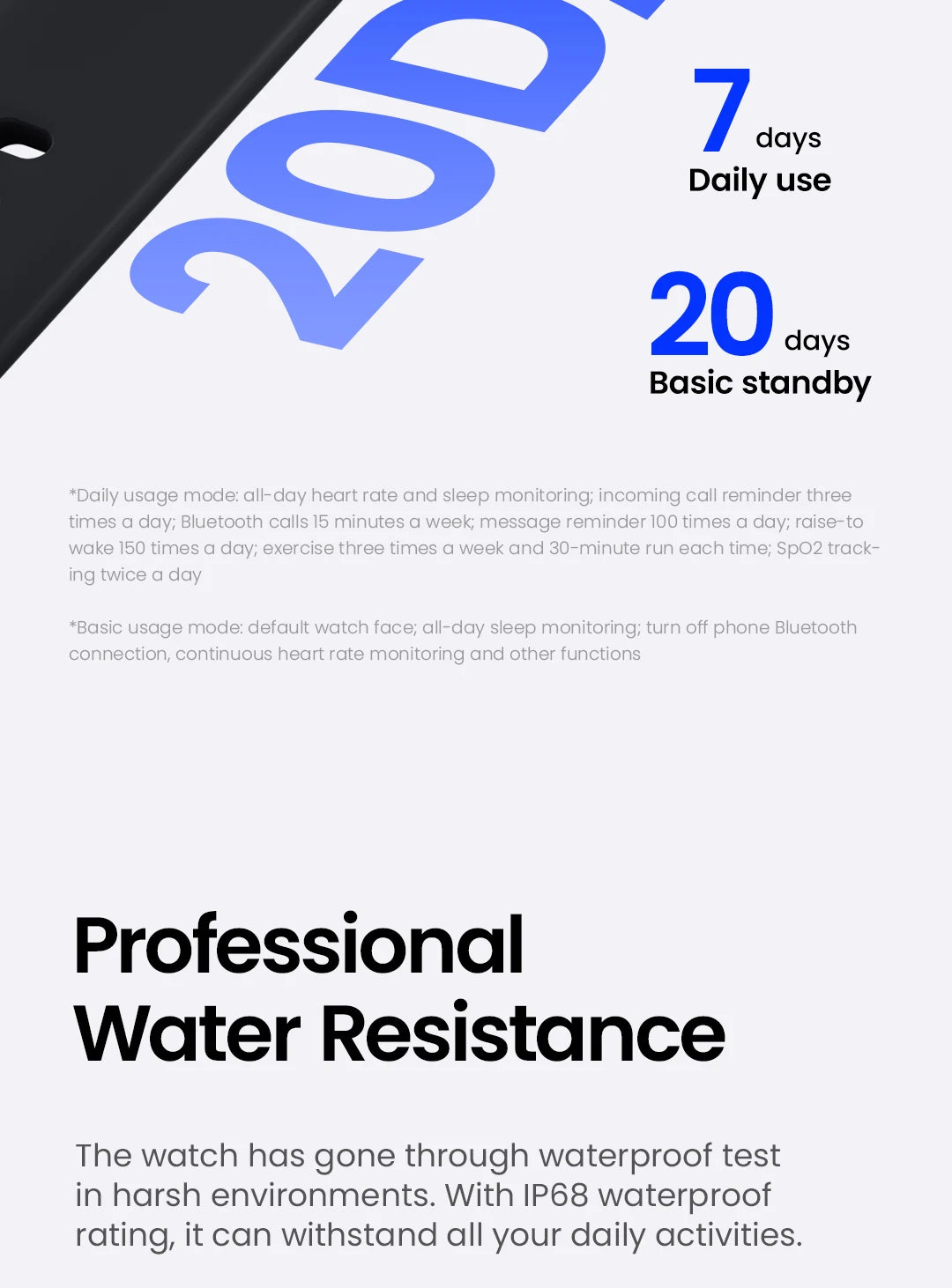 | Resistência à água | Uso diário resistente à água |