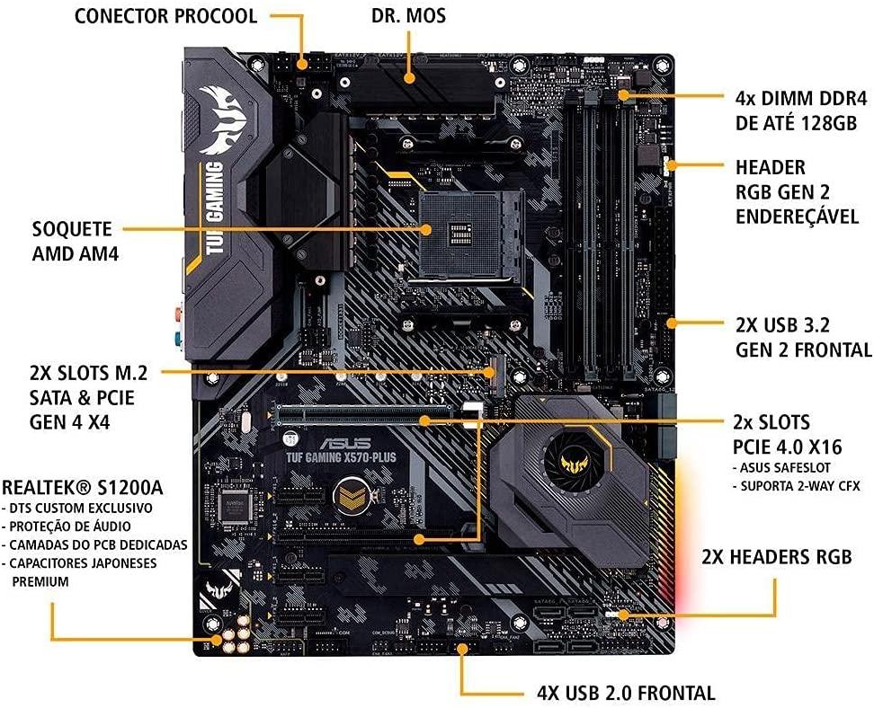 ASUS TUF Gaming X570-Plus Placa-Mãe Gamer AMD AM4 PCIe 4.0